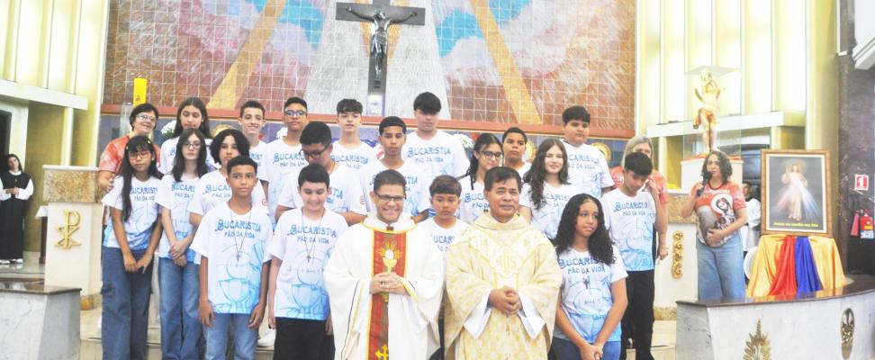 Padre Sabinus conduziu o Rito das Promessas e da Primeira Comunhão aos catequizandos.
