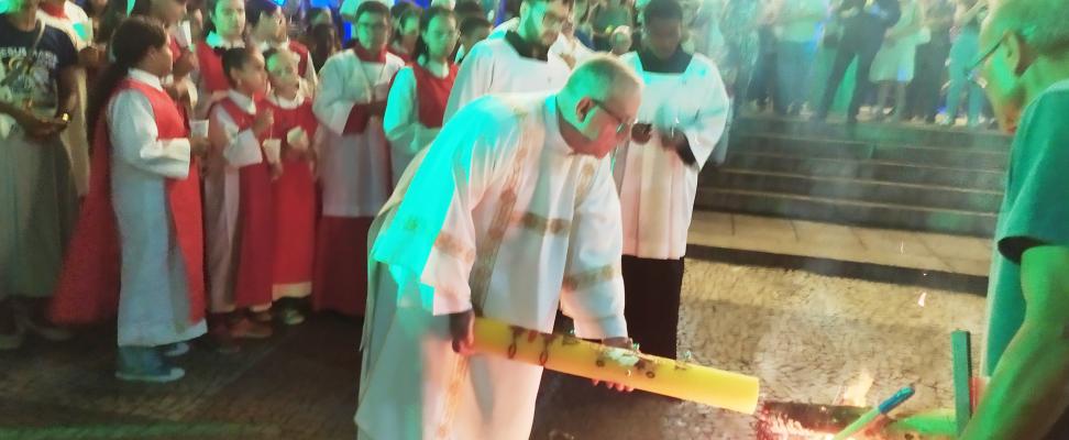 A Vigília Pascal, na Matriz de São Sebastião, Barra Mansa, foi presidida pelo padre Cristóvão Gonçalves (SVD), tendo a participação do diácono Antônio Magno, Paróquia São Sebastião, Barra Mansa, Diocese de BP V.Redonda.